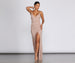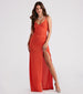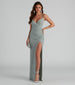 Shine for those special moments in our twinkling Leann dress! She features a sleeveless bodice. a wrap V-neckline. and narrow cross straps. Her slim-fit bodice leads to a curve-hugging floor-length silhouette accented with a ruched side seam and a high side slit. The dress is composed of a glitter knit fabric that offers a form-hugging fit with a moderate stretch. Complete the look with rhinestone heels and a satin clutch.