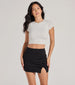 You'll be catching glances left and right in this ponte mini skirt! Featuring a high-rise waist. this skirt boasts a flirty slit with dual bow trim and a bodycon silhouette that hugs your curves. Complete the look in a cute tee and sneakers for any casual day out!