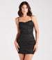 Never dull your shine! Light up the night in this glitter mesh mini dress perfect for your next girl's night out. Featuring a sleeveless square neck. adjustable spaghetti straps. and side ruched seams that accentuate your curves along the bodycon silhouette. Complete the look in strappy block heels.