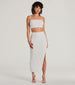 Let your sparkling personality shine in this sequin high slit midi skirt boasting a high-rise waist. a high-cut side slit to showcase some skin. and a bodycon silhouette. Perfect for celebrations. complete the look with the matching crop top.