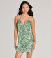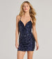 Tis the season for you to glow at every party in this sequin mini dress! Designed with lined mesh fabric with a gorgeous embroidered sequin scroll pattern. the short dress features a sleeveless plunging sweetheart neckline with a wire insert. spaghetti straps. an open lace-up back design for the perfect customized fit. and a bodycon silhouette to flaunt your figure. Complete the look in metallic heels for a glam soiree!
