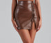 Get this mini skirt together with your closet and baby. it'll be magical! It features a high-rise waist. a front lace-up placket with a slit accent. back zipper closure. and a form-fitting silhouette. Composed of faux leather fabric with minimal stretch. Style with a flirty corset and mules.