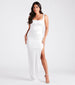 Sleek and stunning. the Lia satin long formal dress is a gorgeous choice for weddings or fancy parties. She features a sleeveless square neckline. thin tank shoulder straps. front seam detailing creating a corset-like waistband. ruching down the side leading to a thigh-high slit. and a floor-length hem with a form-hugging silhouette. The satin-knit fabric showcases a stunning sheen and offers a moderate stretch. Style your look with this long dress with a rhinestone clutch.