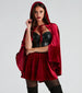 This Halloween. dress up as Lil Red looking like a beauty on your way to Grandma's house! This velvet cape will give your costume the perfect blend of sultry and flirty featuring a hooded neckline with a tie-front closure and an open-front design. Complete the costume with the velvet skirt. PU corset. and wicker basket.Â