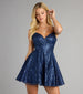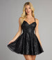 The Linda tulle party dress showcases a dazzling glitter and sequin swirl pattern along a flattering skater silhouette and a pretty lace-up back meant to turn heads. Perfect for shining at a school dance or party.