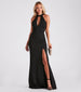 Effortlessly gorgeous and chic. the Lindsay formal dress surprises with sultry details and peeks of skin! She features a sleeveless halter neckline with button closures and a front slit keyhole. an open-back design and lower ruched seam. and a form-hugging mermaid silhouette with a high-cut slit along the floor-length hem. The formal dress is composed of a stretch crepe-lined fabric. Style with a beaded clutch to complete the look for a banquet dinner or gala!Â