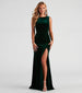 Luxurious velvet creates a charming holiday party-ready look for the Lindsey formal dress! She brings classy glamour in her traditional sleeveless boat neckline. wide shoulder straps. a built-in padded bust. and a princess seam bodice leading to the mermaid silhouette with a high-cut front slit along the floor-length hem. Showcase a sultry show of skin in her head-turning open-back design with a wire insert and ruched seam that accentuates your curves. The formal dress is composed of a smooth velvet fabric with a sewn-in lining and a moderate stretch. Complete your dressy look in a stunning hair accessory and clutch.