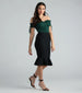 Dress to impress and flaunt in this bandage midi skirt perfect for your nine-to-five or wine and dining! Designed with a flattering high-rise waist. a bodycon silhouette. piped trim. and a flared ruffle midi-length hem. The skirt is crafted from a bandage seamless knit fabric that hugs your body like a glove for a snatched appearance! Complete the look in an off-the-shoulder top and pumps!
