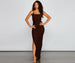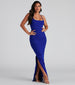 Make a captivating entrance with a formal dress that reflects timeless elegance. Liza features a sleeveless scoop neckline. spaghetti straps. a strappy back design. a ruched body. and a curve-hugging. floor-length silhouette accented with a high side slit. Complete your formal outfit with rhinestone heels.