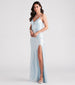 Designed by wow factor sparkle. the Lizza formal sequin dress was made for celebratory events! Shine at school dances. sweet sixteen birthdays. or banquet dinners. She features a sleeveless V-neckline with a sheer mesh insert. adjustable spaghetti straps. a padded bust. and a curve-hugging slim silhouette with a sultry front slit and a floor-length hem. The formal dress is composed of a sequin-pattern mesh fabric with a stretchy knit lining. Complete the look with a silver clutch and heels.