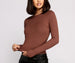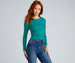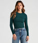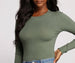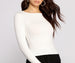 This ribbed basic top is an everyday essential! It features fitted long sleeves. a flattering crew neckline. and a mid-length form-hugging silhouette. This top can totally be dressed up with a plaid mini skirt. or styled more casually with destructed denim.