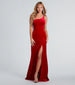 Your allure in the Loni formal velvet long dress will be impossible to ignore when you strut into a gala or holiday soiree! She features a one-shoulder neckline. adjustable spaghetti strap. a padded bust. a mermaid silhouette that flaunts your curves. and a revealing high front slit that leads to her floor-length hem. The floor-length gown is composed of a soft velvet fabric that exudes elegance and offers plenty of stretch. Complete the look with platform heels and a clutch.