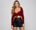 You'll be lookin' trendy and chic in this ruched off-the-shoulder crop top! It features a sweetheart neckline with padded cups. long sheer fitted sleeves with ruched detailing. a front adjustable drawstring. and a cropped. form-hugging fit with all-over ruching. Style this top with a mini skirt and clear heels.