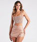 Level up your 'fit looking so glam with this rhinestone and pearl embellished top!  It features a sleeveless square neckline. tank shoulder straps. a closed back. all-over rhinestone embellishments a stylish shimmer. faux pearl beading in an intricate front design. and a fitted. cropped hem. The sheer mesh fabric offers plenty of stretch. Pair with a faux leather mini skirt and clear heels for a night out.