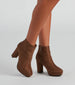 There is a lot to love about these nubuck booties and all the ways you can style them! They feature an almond toe. block heel. and side zipper closure. and fit above the ankle. Complete the look in a chic duster trench coat for a day in the city!