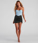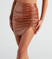 Bet you never had a love like this! Feel free to move in this PU mini skort featuring a high-rise waist. pull-on styling. a front ruched seam on an envelope style silhouette. Complete the look in a cutout bodysuit for an edgy vibe.