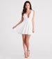 You'll be the loveliest of them all in this chiffon skater dress - a stunning option for bridal showers. graduations. or dressy parties! The short dress features a sleeveless plunge V-neckline along the front and back. a ruched high waist. and a flowy fit and flare silhouette. Complete the look with rhinestone block heels for some shine!