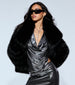 When the vibe is chic and luxe. this faux fur coat gets it right. It delivers high-gloss glam with a plush feel that's impossible to ignore. The structured collar and cropped cut add drama to every entrance.