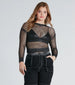 A luxurious twist on casual style! This sheer fishnet sweater top is crafted from a sheer metallic knit for an eye-catching and unique look with fitted long sleeves. a crew neckline. a cropped hem. and a detached faux leather triangle bralette to make this sweater stand out! Complete the look with trendy denim jeans for a weekend style.