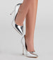 Have yourself a magic moment in these chrome pumps featuring an on-trend pointed toe. stiletto heel. and a faux leather cushion footbed. Complete the look in a dressy jumpsuit.