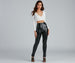 Create a major chic moment with leggings that showcase a sleek vibe! The leggings feature a high-rise waist. a skinny leg fit. and dual slits at the ankle. The leggings are composed of a lined faux leather fabric that offers a form-hugging fit with a moderate stretch. Complete look with a bustier and mules.