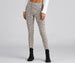 Bring sassy vibes with these on-trend skinny pants! They feature a high-rise waist. a form-hugging fit. and are composed of a luxe brushed faux suede fabric with an all-over snake print pattern. Style these pants with a basic crop top and combat boots.