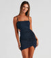 Illuminate the night in this gorgeous glitter knit mini dress that gives off major shine. It features a sleeveless square neckline. spaghetti straps. waist cutouts that lead to an open lower back. front ruching. and a short. curve-hugging silhouette. Complete the look with embellished heels.