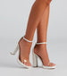 Step out like the trendsetter you are with heels that elevate your style game! The heels feature a closed-back. an adjustable ankle strap. an open almond toe with a clear PVC strap over the toe. a platform. and a block heel. The heels are composed of a faux leather material. Complete look with a bustier and mini skirt.