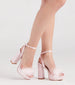 Make everyone wink at you in these cute satin platform heels perfect for styling with your night-out look! They feature a square toe. a marabou foot strap. a block heel. and an adjustable ankle strap with buckle closure. Complete your outfit in a sassy bodysuit and mini skirt!