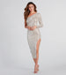 Sequin dresses make sure every eye will be on your dazzling aurora and the Malika formal midi dress is no exception! She features a chic one-shoulder neckline adorned with a fitted long sleeve. an asymmetrical pleated accent. and a form-hugging silhouette revealing a sexy side slit design. The formal midi-length dress is crafted from a sequin embellished lined fabric that brings the sparkle. Complete the look with earrings and heels for a holiday party!