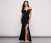 Elevate your evening look in our breathtaking dress! She features an off the shoulder neckline. a plunging wired V bust. shoulder strap accents. lifting padded cups and princess seams. Her slim fit bodice leads to a sweeping floor length silhouette and accented with a high slit that is complemented with a contrasting nude lining. Dress is composed of a lined smooth knit fabric that offers a form hugging fit with a moderate stretch. Includes a back zipper closure.
