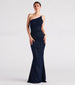 Glistening glitter amplifies the shine on the Maria formal long dress perfect for school dances. red carpet events. and fancy soirees! She features a sleeveless one-shoulder neckline. a padded bust. a sleek bungee spaghetti strap that crosses along the open back. and a form-hugging mermaid silhouette with a floor-length hem. The formal dress is composed of a glitter-lined fabric with a moderate stretch. Complete the look with a sparkly bracelet and earrings.