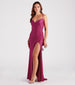 So stunning and sultry. the Maribell formal long dress is designed to draw all the attention onto you! Perfect for school dances. wedding guests. and formal spring events. She features a sleeveless surplice V-neckline. padded bust. and spaghetti straps that shape the lace-up back. a side ruched seam to accentuate your curves along her mermaid silhouette with a skin-baring high-front slit. and floor-length hem. The formal maxi dress is composed of a shiny smooth knit fabric with a sewn-in lining and plenty of stretch. Complete the look and style the maxi long dress with a glitter clutch and block heels.