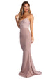 An elegant. blushing beauty takes form in our mauve Marietta fit and flare dress! She features a slim lace bodice with a scalloped V neckline. adjustable narrow shoulder straps. and a high banded waist leading to a floor-length crepe skirt with a back lace godet. and a beautifully flared hem. Dress offers a form hugging fit with a moderate stretch.