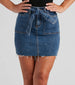 Create adorable everyday looks with the Mary mini skirt by Windsor Denim! It features a high-rise waist. a trendy tie-front belt. a mini-length frayed hem. and a form-hugging fit. The denim fabric offers minimal stretch. Style with a fitted bodysuit and strappy mules.