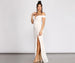Mesmerize everyone as you step out in our elegant Marzia dress! Featuring an off-shoulder V-neckline. a floor-sweeping mermaid silhouette. a thigh-high slit. and stunning all-over sequin embroidery in a chic scroll pattern. she brings drama everywhere she goes! Complete the look with block heels.