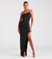 Rhinestone adds a glamorous shine and shimmer to the Maylene formal dress perfect for weddings or a dressy celebration! She features a sleeveless one-shoulder neckline. a gorgeous rhinestone-embellished knotted shoulder strap. a form-hugging slim silhouette. and a flattering high side slit and long hem. The formal dress is crafted from a double-lined slinky knit fabric with moderate stretch. Complete the look with a rhinestone bracelet and clutch.