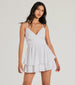 This chiffon romper was meant to be adored by everyone at showers or celebrations! The surplice V-neckline and adjustable spaghetti straps provide a flattering fit. while the crisscross open back adds a touch of playful charm. The tie waist cinches in at the perfect spot. and the layered ruffled short-length hem adds a flirty and feminine touch. Complete the look in wedge sandals.