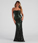 Bring the glitz with a formal dress that illuminates the night! Meara features a sleeveless square neckline. padded cups. bungee spaghetti straps. multiple bungee bar straps. a damask sequin pattern. and an A-line silhouette. The dress is composed of a lined mesh fabric that offers a form-hugging fit with minimal stretch. Complete look with rhinestone heels and a rhinestone clutch.