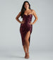 Radiate sexy elegance in the Meilani formal midi dress perfect for serving major looks as a wedding guest or attending a banquet dinner! She features a sweetheart neckline with a square cutout. adjustable spaghetti straps. a padded and underwire bust. a bodycon silhouette that hugs your gorgeous curves. and a flattering front slit and midi-length hem. The formal dress is designed with a sparkly sequin-scroll pattern on mesh fabric with a stretchy knit lining. Complete the look with fringe earrings and silver heels!