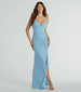 Prepare for glowing praise when you step out in the Melinda mermaid glitter formal dress at banquets or weddings! Made with glitter knit fabric. this floor-length dress will ensure you stand out in any formal event. The V-neckline and adjustable spaghetti straps create a sensual allure. while the high front slit and mermaid silhouette accentuate your natural curves while flaunting some skin. Complete the look with a necklace.