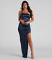 Make a mesmerizing impression with a formal dress that creates a head-turning moment! Melody features a one-shoulder neckline. a double-row of asymmetrical spaghetti straps. and an A-line silhouette with an ultra-high side slit. The dress is composed of a lined satin fabric that offers a form hugging fit with a moderate stretch. Complete look with high heels and a rhinestone clutch.Â