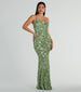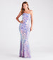 Get a luxe look for your next fancy night out in the stunning Meredith sequin formal dress. She features a sleeveless bodice. an asymmetrical one-shoulder neckline with dual adjustable spaghetti straps. and a back zipper and hook and eye closure. She has a floor-length. form-hugging mermaid silhouette to highlight your curves. The dress is composed of a sheer mesh fabric with an all-over gorgeous sequin embroidered floral design and includes a stretchy knit lining. Complete your outfit with rhinestone stud earrings and a dainty sparkly bracelet.