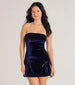 Get ready to dazzle in the mesmerizing luxe sleeveless velvet bow romper. With a chic square neckline. mini skirt overlay. and hidden shorts. it's your go-to for effortless glam.