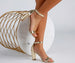 Illuminate the night with each step in these metallic block heels! They feature an open almond-shaped toe with a strap. a thin adjustable ankle strap. a block heel. and a chic chrome finish. Style these heels with sparkling statement earrings.