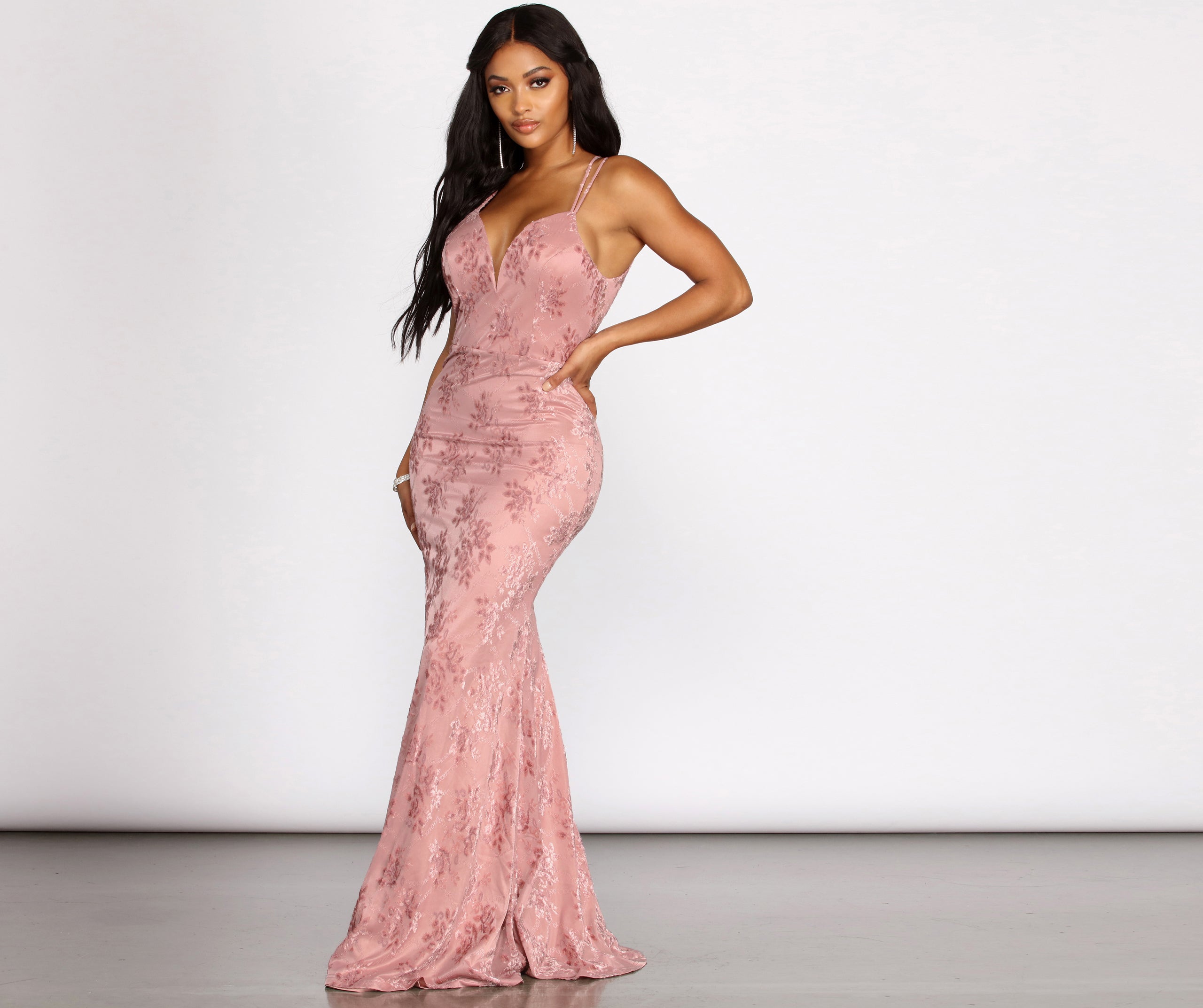 Elevate your look with our romantically inspired Mia dress! Her luxe velvet and sweet floral details are all you need to charm them all!Â