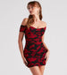 You in this floral mesh dress to meet them at midnight! Mesmerize in this off-the-shoulder mini dress featuring a sweetheart neck. short-sleeve cuffs. a padded bust. and side ruched seams that accentuate your curves along the bodycon silhouette. Complete the look in strappy lace-up heels.
