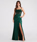 Ready to swoon an entire room? The Mikayla formal long dress will do just that at banquet dinners. ceremonies. and school dances! She features a sleeveless square neckline. adjustable spaghetti straps. a padded bust. and a delicate lace embroidered corset bodice with sequins for a hint of sparkle and flexible boning. Her side pleated hip seam creates the flattering asymmetrical-style mermaid silhouette with a stunning front slit along the floor-length hem. The formal maxi dress is composed of a silky satin-lined fabric with minimal stretch. Style with statement earrings and a clutch to complete the look!