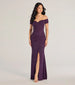 Radiate elegance in a long mermaid glitter dress that features an off-the-shoulder neckline with a sweetheart bust. short sleeves. a corset-like bodice with flexible boning for structure. a wrap silhouette. and a high side slit. Complete the wedding guest outfit with a rhinestone clutch.Â