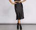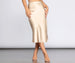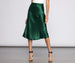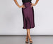 Slip into something effortlessly polished when you wear this satin midi! Skirt features an elasticized waist. a side zip. seam detail at back. and a gently flared hem. Skirt is made from a smooth woven material with a slight sheen and moderate stretch.